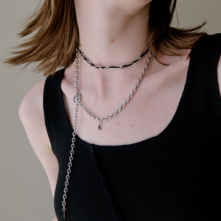블랙꼬임체인이 포인트 초커 & 숏목걸이