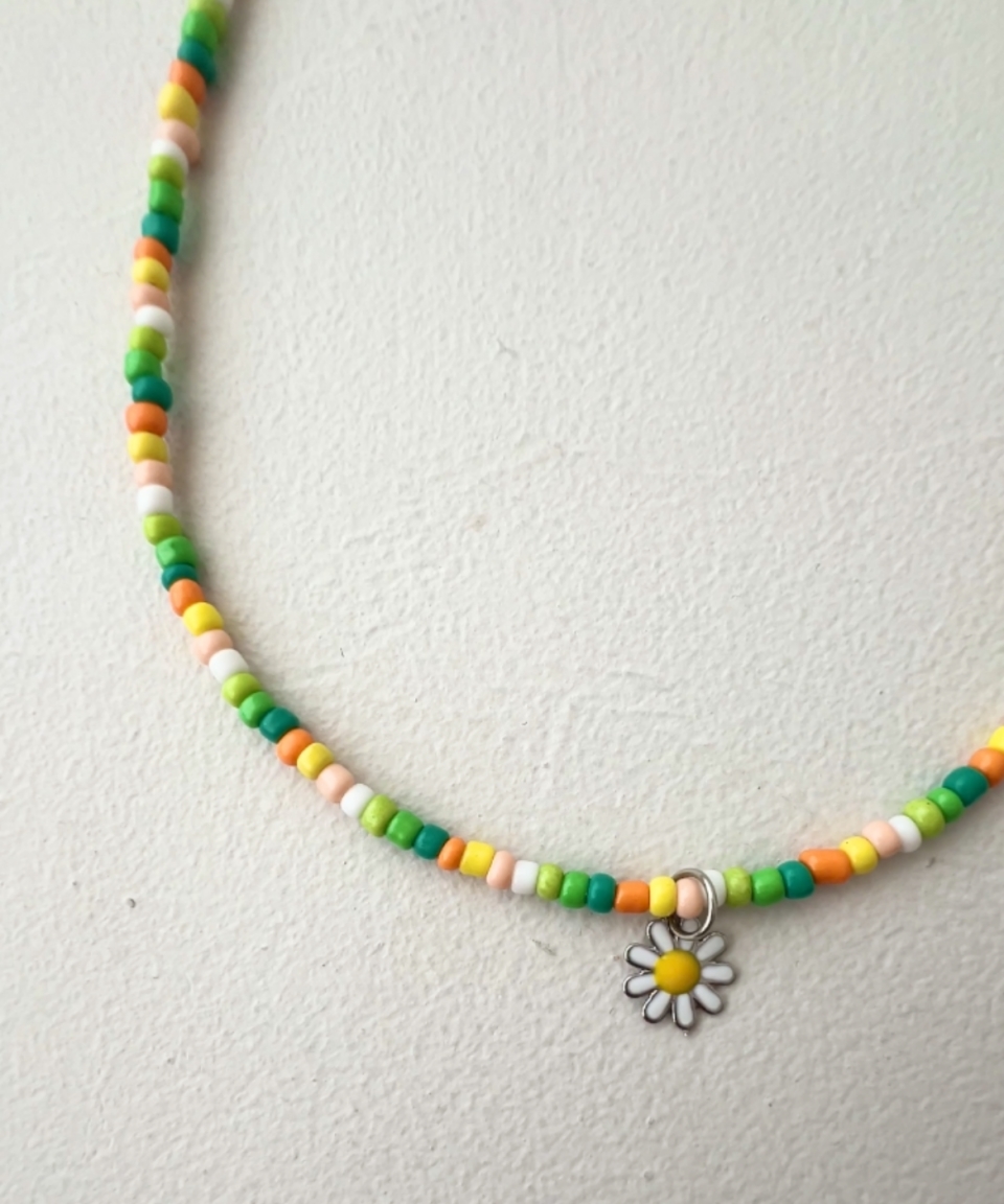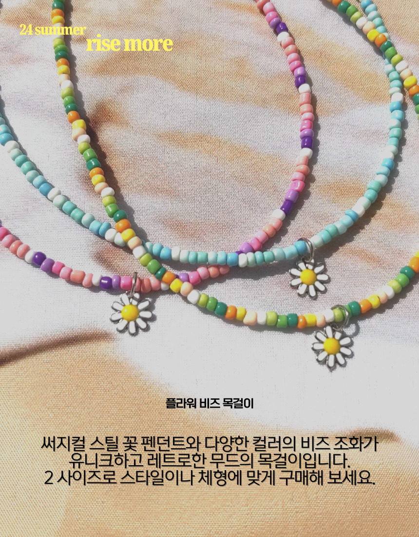 써지컬 스틸 꽃 펜던트와 비즈의 조화가 매력적인 목걸이.