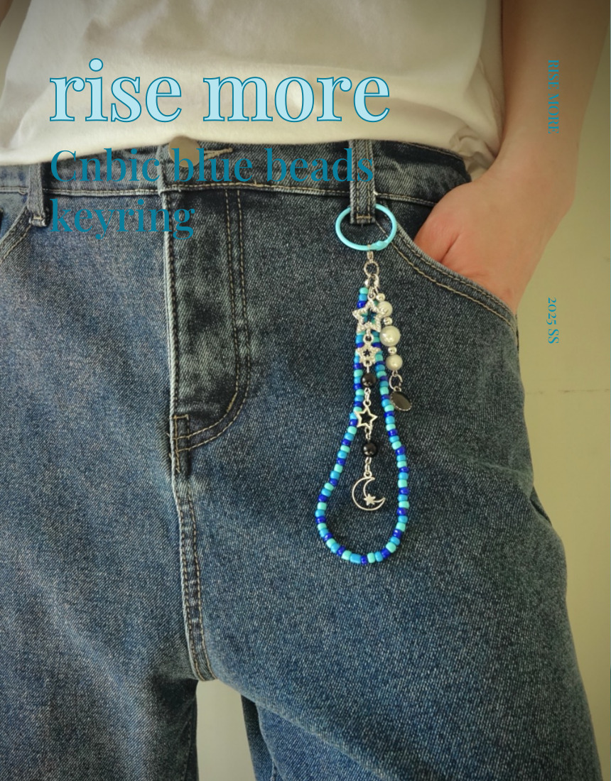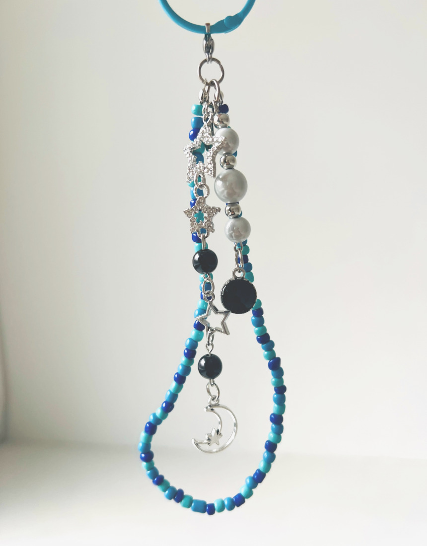 큐빅별과 블랙볼의 조합 블루 비즈 스트랩