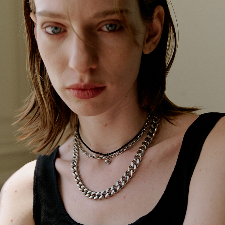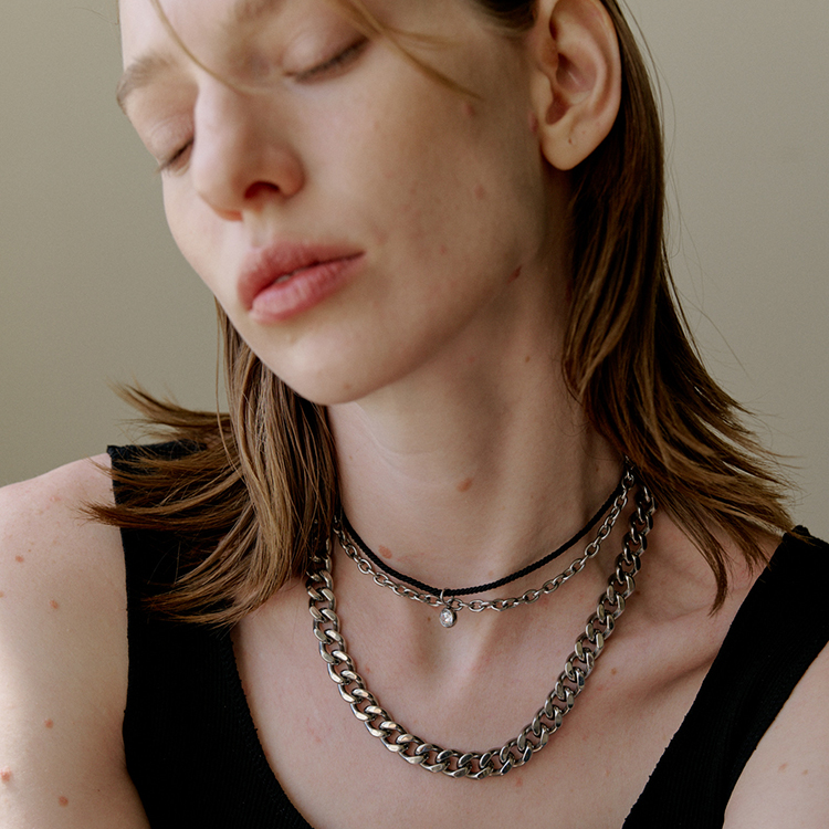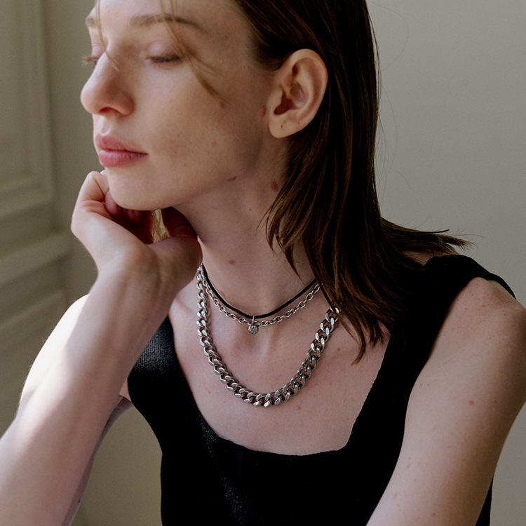 목걸이를 펜던트느낌으로 앞이나 옆쪽으로 착용하시면